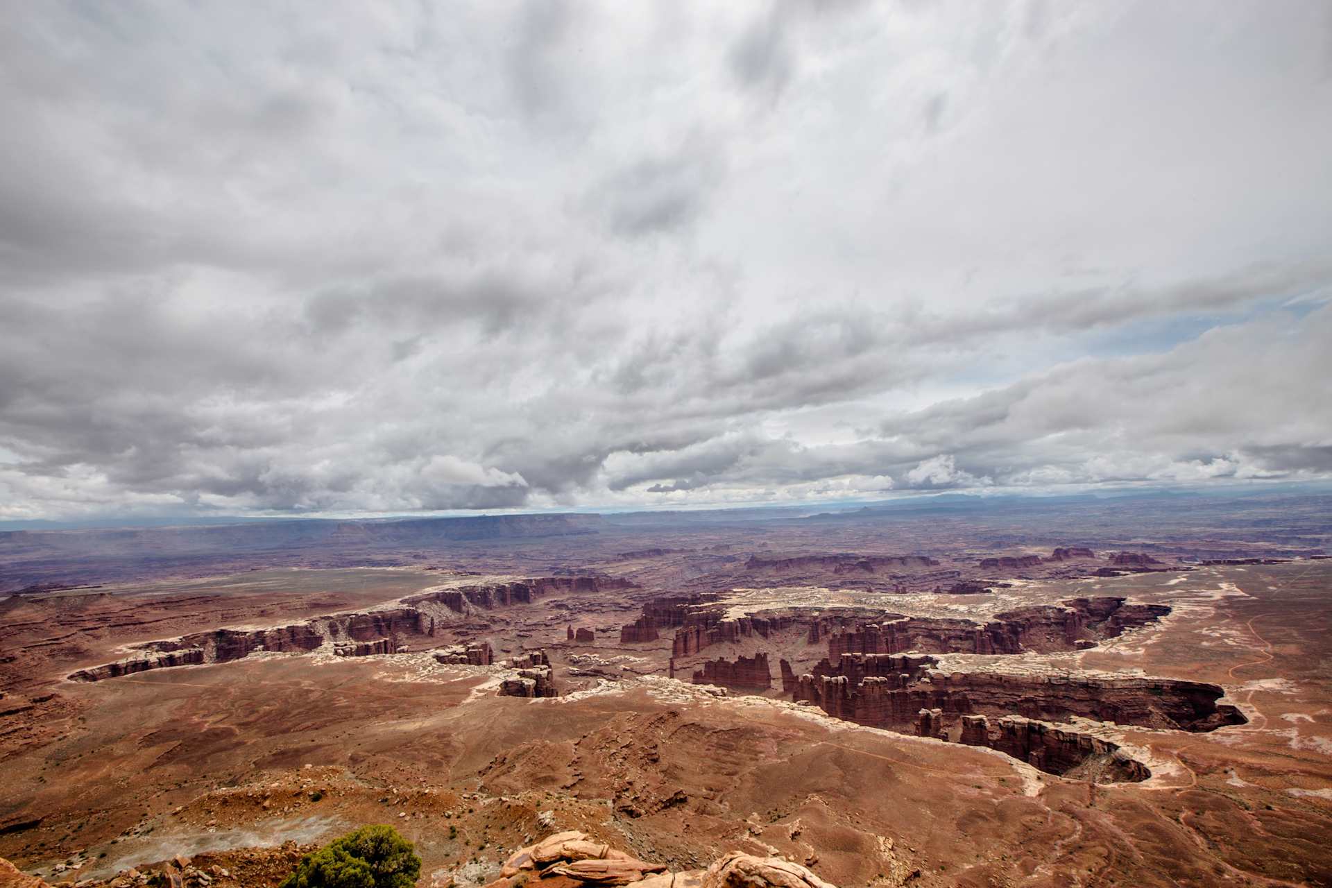 At the end of the winding road, the southern-most spot on the Island in the Sky, Grand View Point Overlook, is considered to be one of the best views from the high mesa.