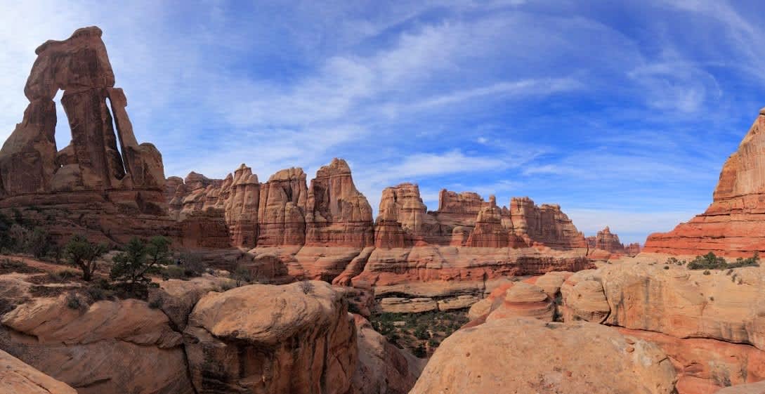 While Island in the Sky is known for its expansive overlooks, the Needles District is a much more immersive experience. Named after the many needle-like pinnacles of rocks, Needles provides several trails worthy of scenic day hikes.
