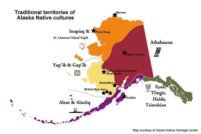 - Alaska's indigenous people- Alaska Natives- can be divided into five major groupings: Aleuts, Northern Eskimos (Inupiat), Southern Eskimos(Yuit), Interior Indians (Athabascans) and Southeast Coastal Indians (Tlingit and Haida). Today, Alaska Natives make up about 15% of the population.
