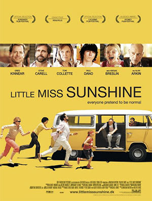 Little Miss Sunshine starring Greg Kinnear, Toni Collette, Abigail Breslin, and Steve Carrell, 2016. A tragicomedy road trip movie, this story follows a family that is determined to enter the youngest Hoover family member into the “Little Miss Sunshine” beauty pageant. The relatives pile into a yellow Volkswagen van and head out on an 800-mile road trip to California from New Mexico.