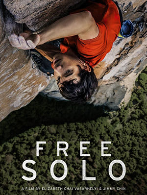 Free Solo featuring Alex Honnold, 2018. A harrowing documentary of rock climber athlete Alex Honnold, Free Solo is a story about determination, skill, and passion. Honnold attempts to climb Half Dome, a mammoth granite rock formation in the iconic Yosemite National Park, with no ropes, gear, or help -- a dangerous feat no climber had ever achieved. His team astonishingly filmed the entire journey.