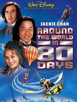Around the World in 80 Days starring Jackie Chan, Steve Coogan, and Arnold Schwarzenegger, 2004. This movie involves just what you think it might: Global travel. A Victorian-era English inventor believes he can see the world in 80 days and create a flying machine.