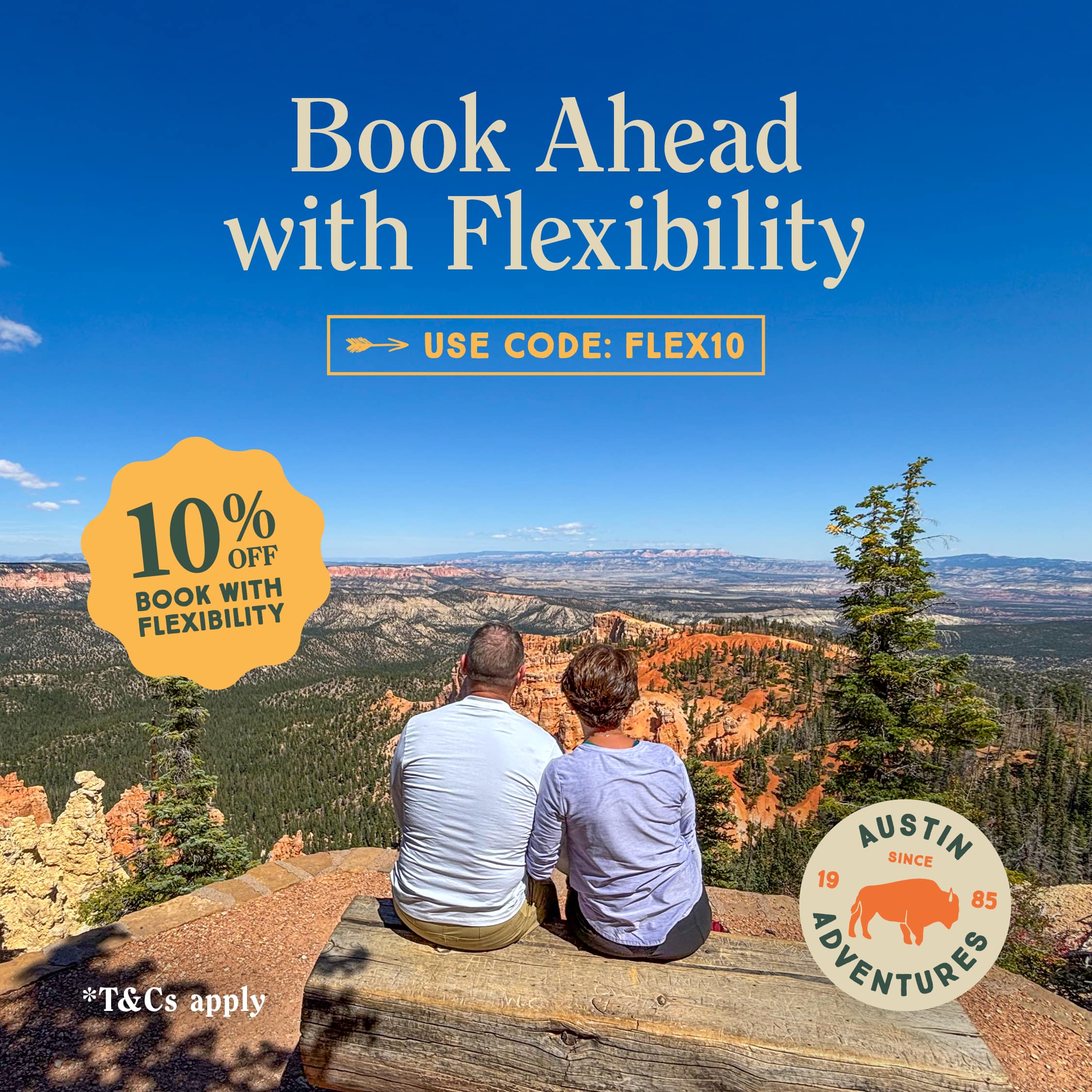 For a limited time, save 10% on Austin Adventures trips departing after November 1, 2026, when you use code FLEX10 at booking. Plus, we know plans can change, so this offer also includes one free date change. Full T&Cs apply.