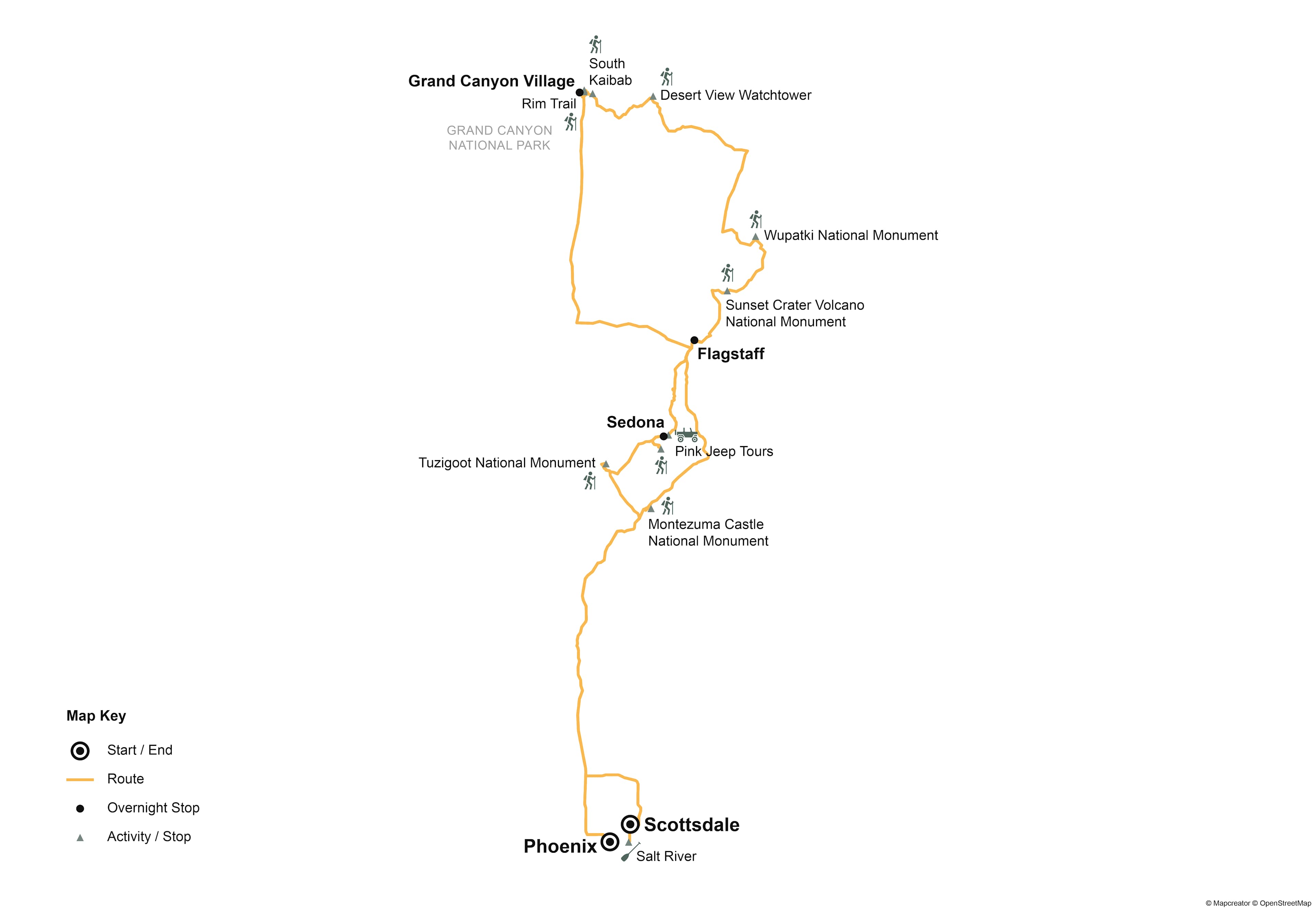 Departure: Flying out on the last day of the trip, we recommend departing from Phoenix after 3pm. Earlier flight times will require a separate transfer booked at your own expense.