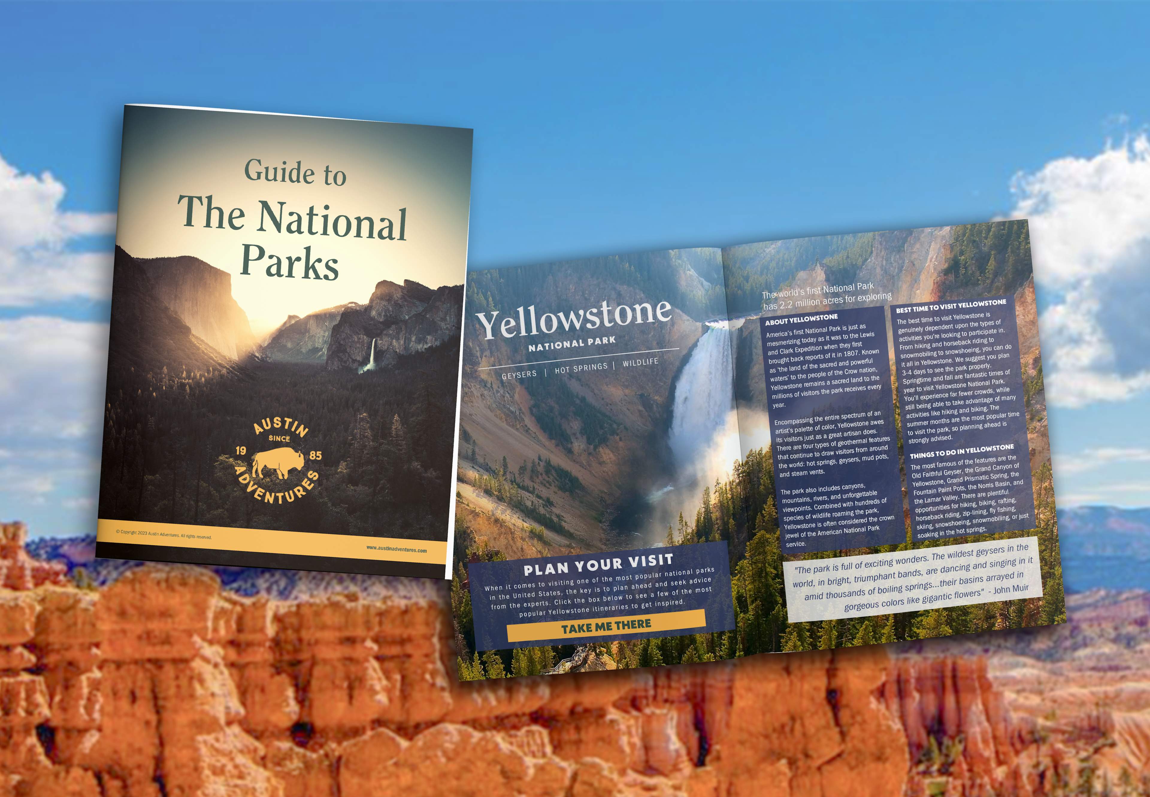 What’s inside the E-Guide?— Comprehensive features on favorite National Parks— Our carefully crafted itineraries across the U.S. and Banff & Jasper National Parks— Advice on the best seasons to visit and what to pack— Local insights on wildlife, trails, and lesser-known spots— Tips for families, couples, and solo adventurers